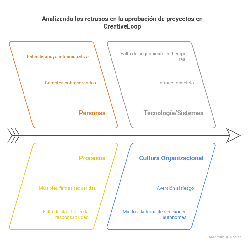 - Procesos: Flujo de trabajo, burocracia, falta de estandarización