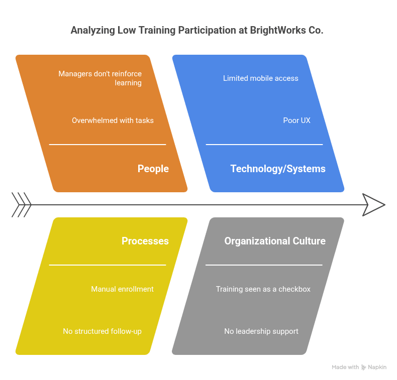 "BrightWorks Co." invests heavily in employee training, but participation is low and completion rates are poor—even in mandatory modules.