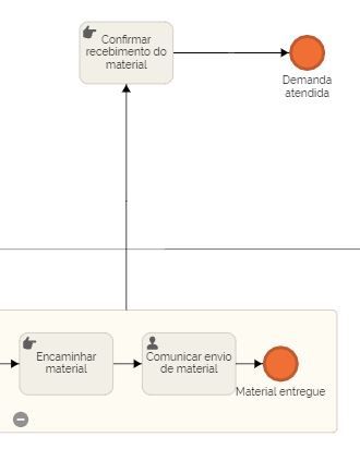 O subprocesso conta com as seguintes tarefas: verificação do pedido, separação dos itens e da nota de entrega, encaminhamento do material e comunicação do envio do material.