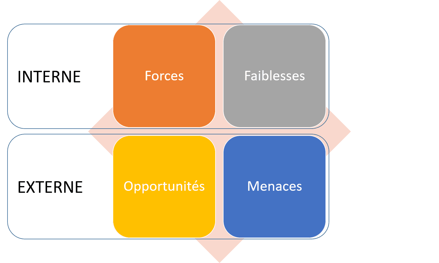 Pour obtenir le résultat de cette analyse à l’aide de l’outil SWOT, il est nécessaire de diviser en deux l’environnement de l’entreprise :